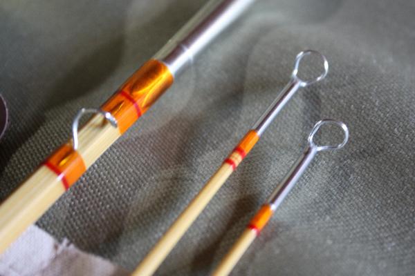 golden blond, finished in bright orange wraps with red tipping and nickel silver hardware. In
